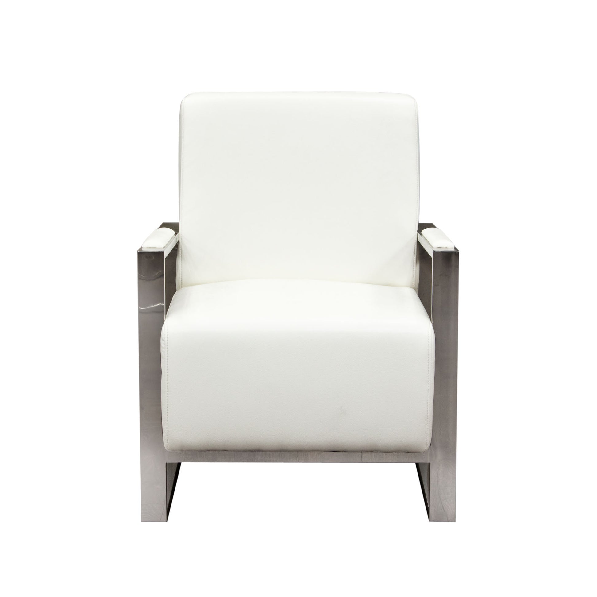 White bonded leather seating with chrome base
